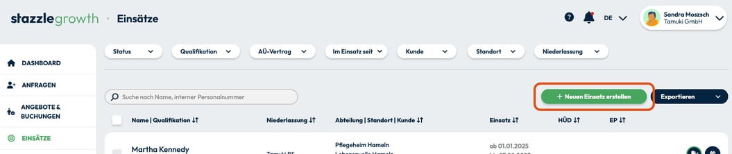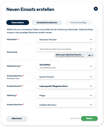 Als Disponent können Sie für Ihre Kunden und, um alle Einsätze Ihrer Mitarbeiter zu digitalisieren, laufende Einsätze anlegen.
